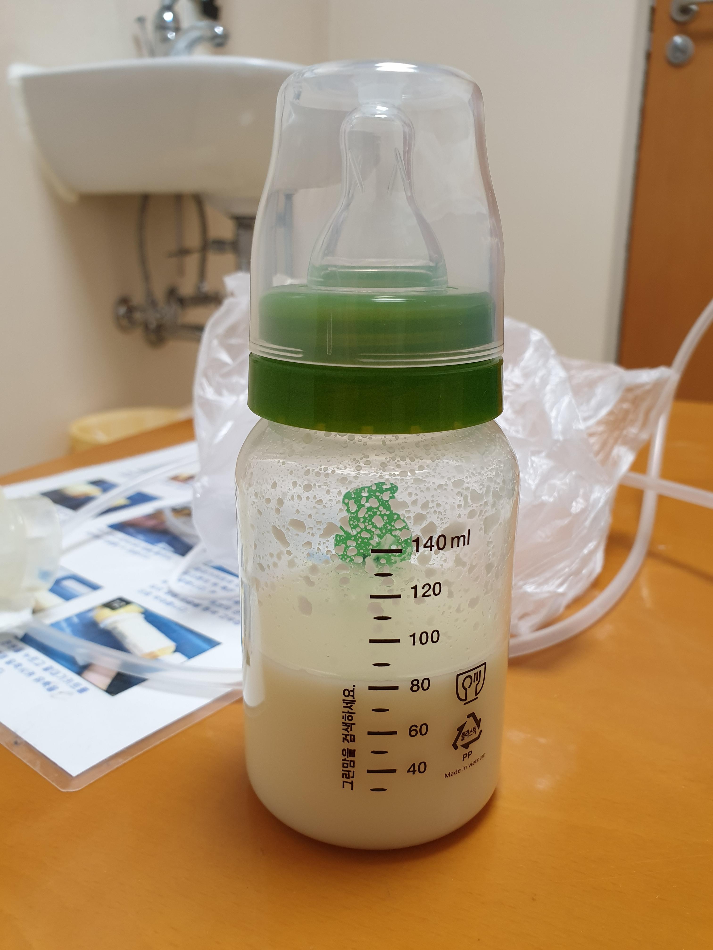 조리원을 퇴소하고 집으로 돌아왔을 때, 산후도우미가 오셨는데 그분에게 유축한 젖을 보여드렸더니 20ml 정도 나왔나 싶을 정도였다.