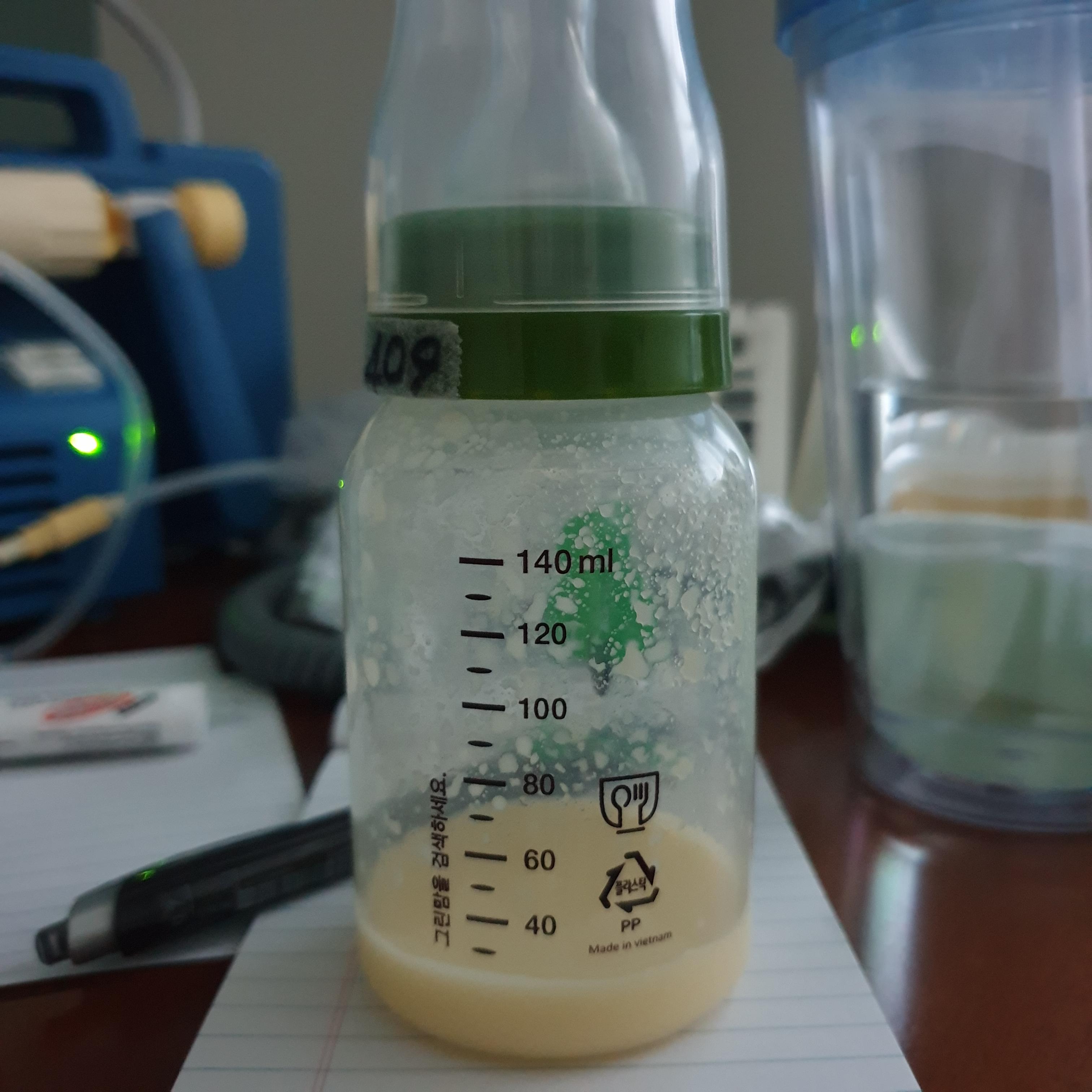 조리원을 퇴소하고 집으로 돌아왔을 때, 산후도우미가 오셨는데 그분에게 유축한 젖을 보여드렸더니 20ml 정도 나왔나 싶을 정도였다.