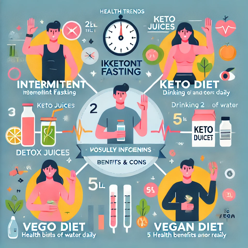 ◆ 간헐적 단식 – 효과 있음! 하지만 장기적인 실천이 중요함. ◆ 키토제닉 다이어트 – 빠른 감량 가능! 하지만 콜레스테롤 증가에 유의. ◆ 디톡스 주스 – 비타민 섭취에는 좋음! 하지만 해독 효과는 과장됨. ◆ 하루 2L 물 마시기 – 건강에 도움! 하지만 정해진 양에 집착할 필요 없음. ◆ 비건 식단 – 영양 균형을 맞춘다면 건강에 유익함.